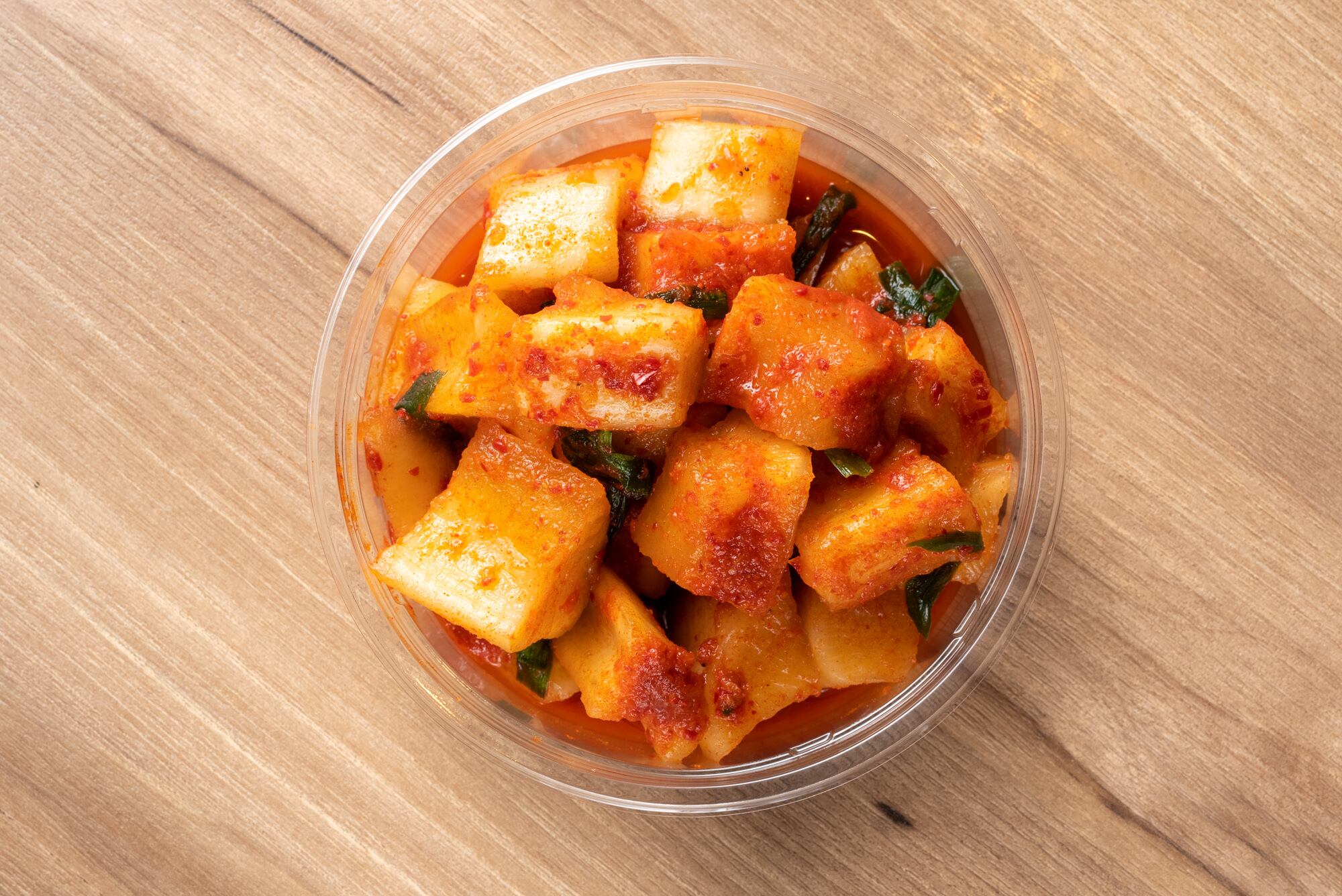 ニラも入っていてニラのアクセントと、大根の瑞々しさがおいしいキムチです。